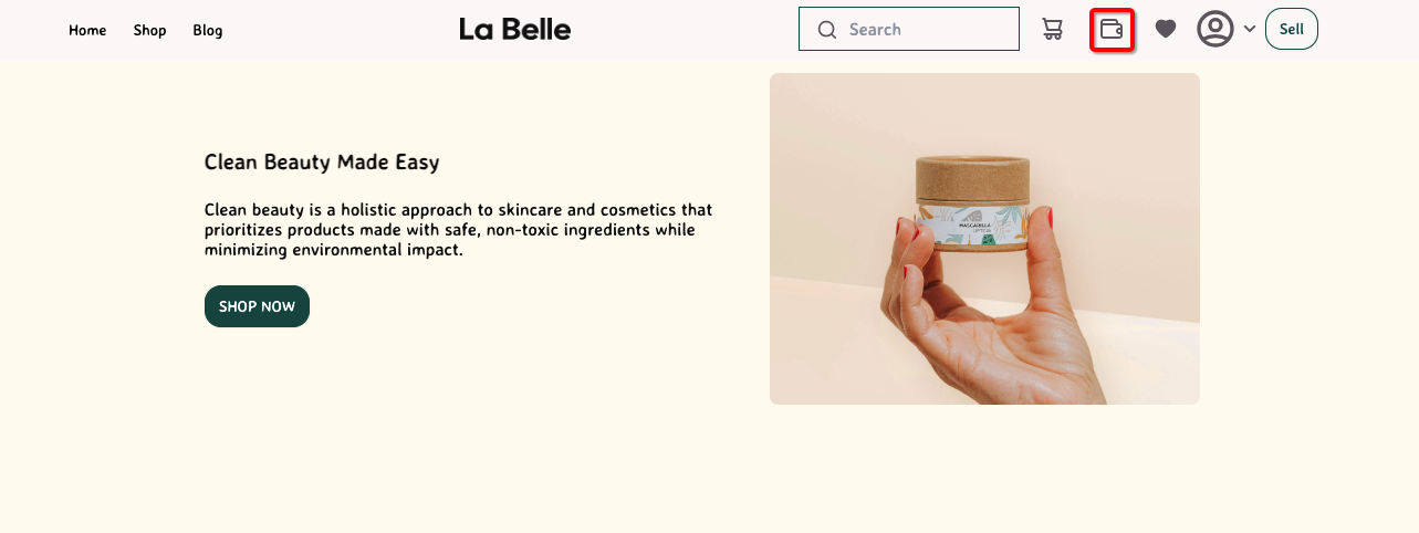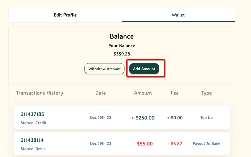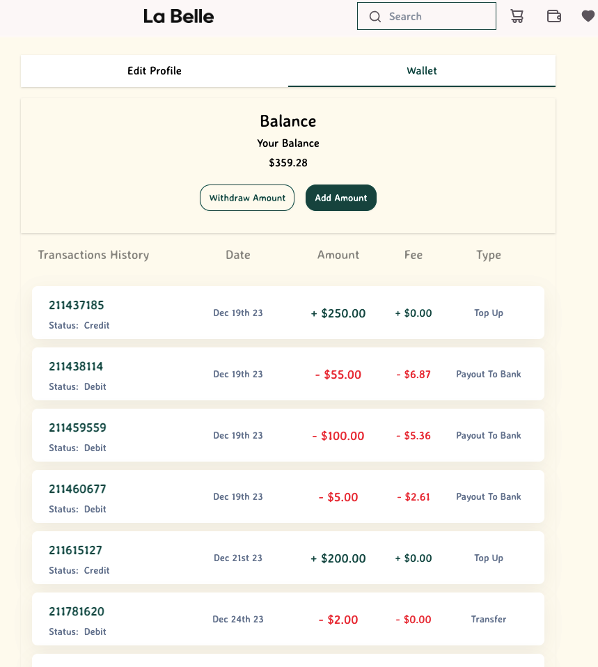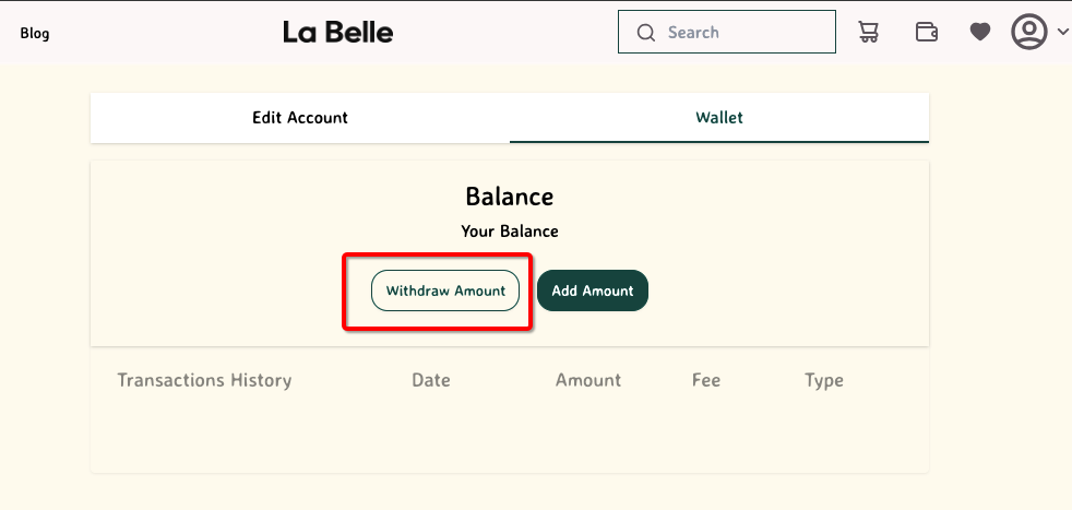 This is how the wallet page looks in the Tradly Hosted website templates.