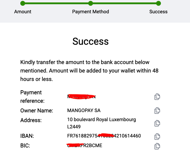Money adding process into your wallet can be done through two ways (As supported by MangoPay). It is straightforward