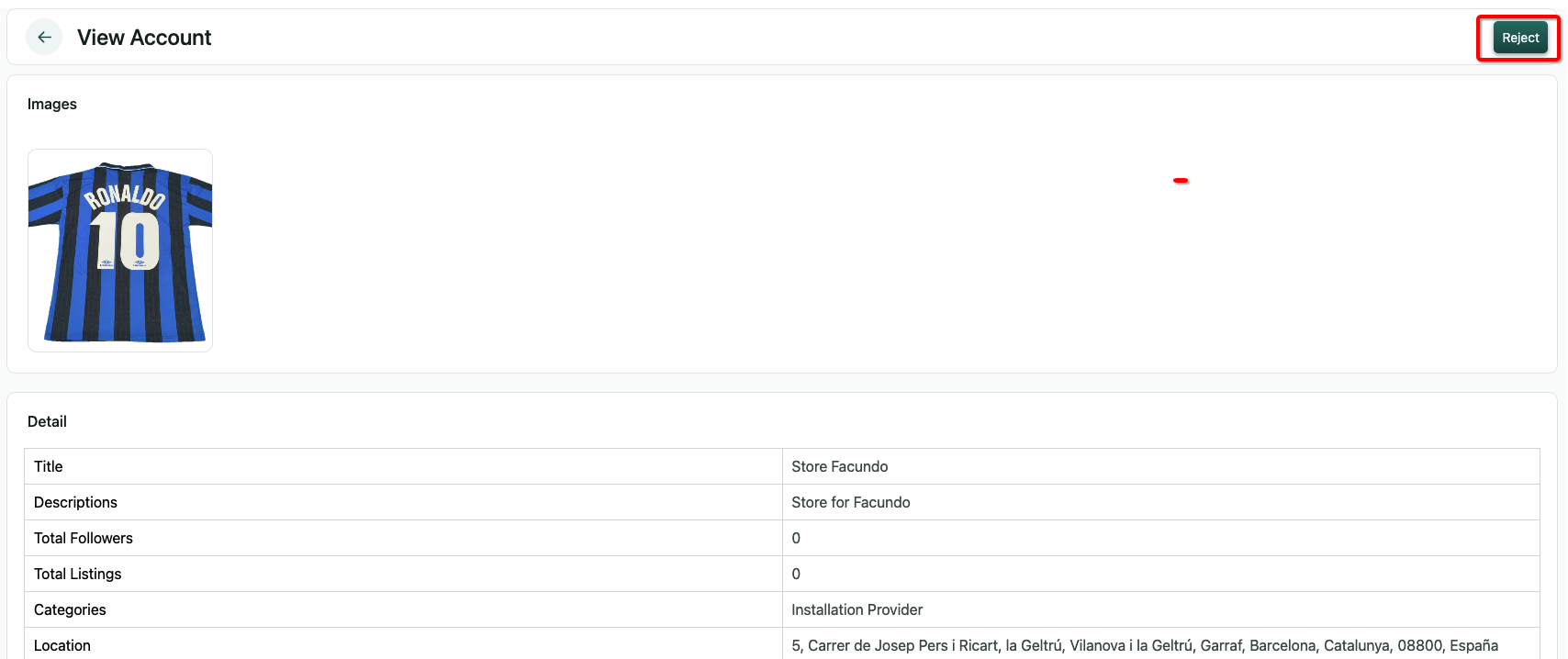 Once the seller creates an account in the app, it goes through an approval process where we as Platform owners will review all the information submitted by sellers and approve/reject them based on what sellers are going to sell in the platform and information accuracy. In this way, we allow only quality sellers on the platform to sell products. The screenshot below shows the dashboard where we moderate the sellers.
