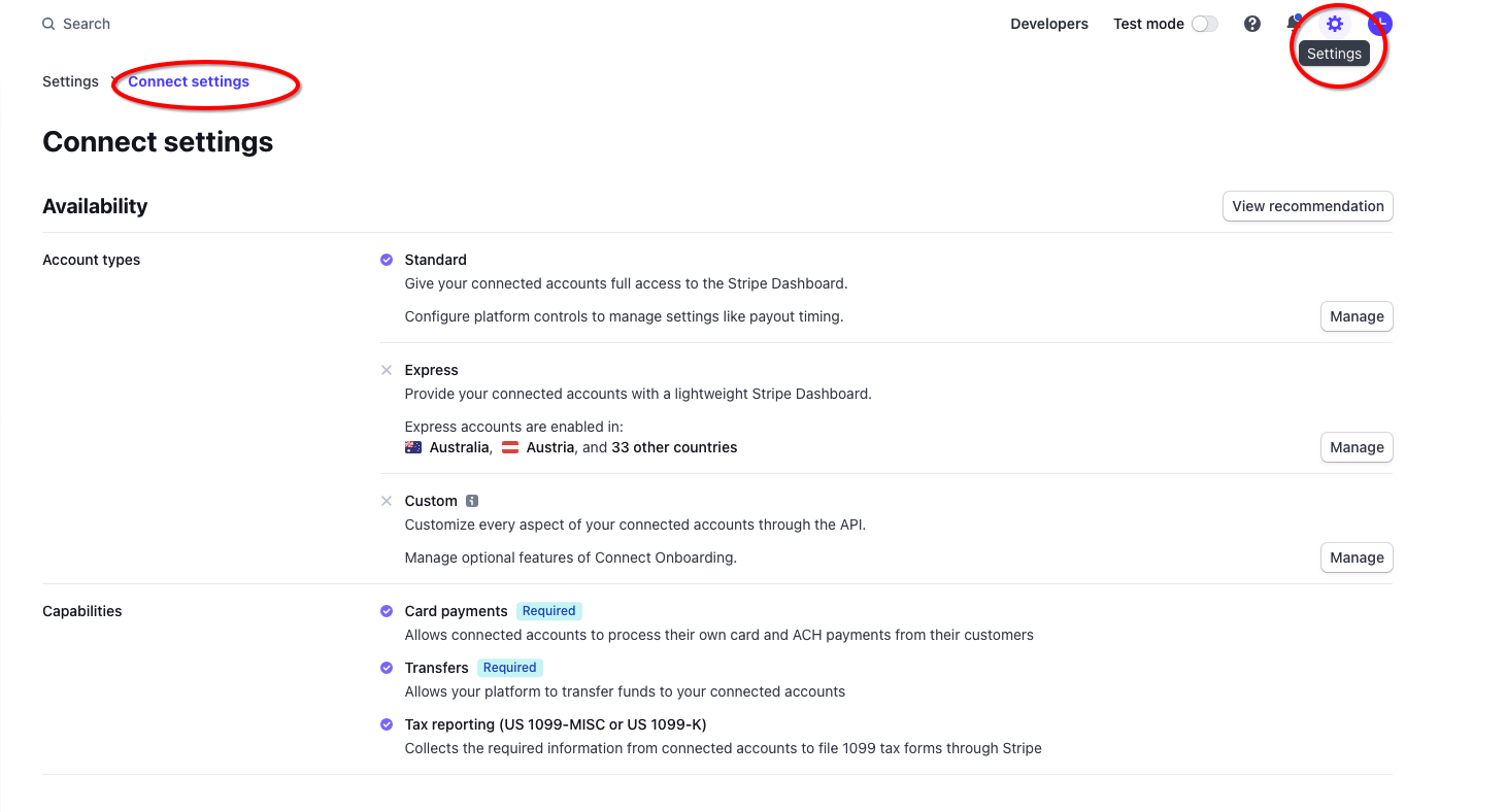 TradlyPlatform uses two types of Stripe Connect features. Stripe Connect - Standard & Express (Marketplace features with pay in and payout, Available for 30+ countries only as per Stripe availability) URL : https://stripe.com/global
