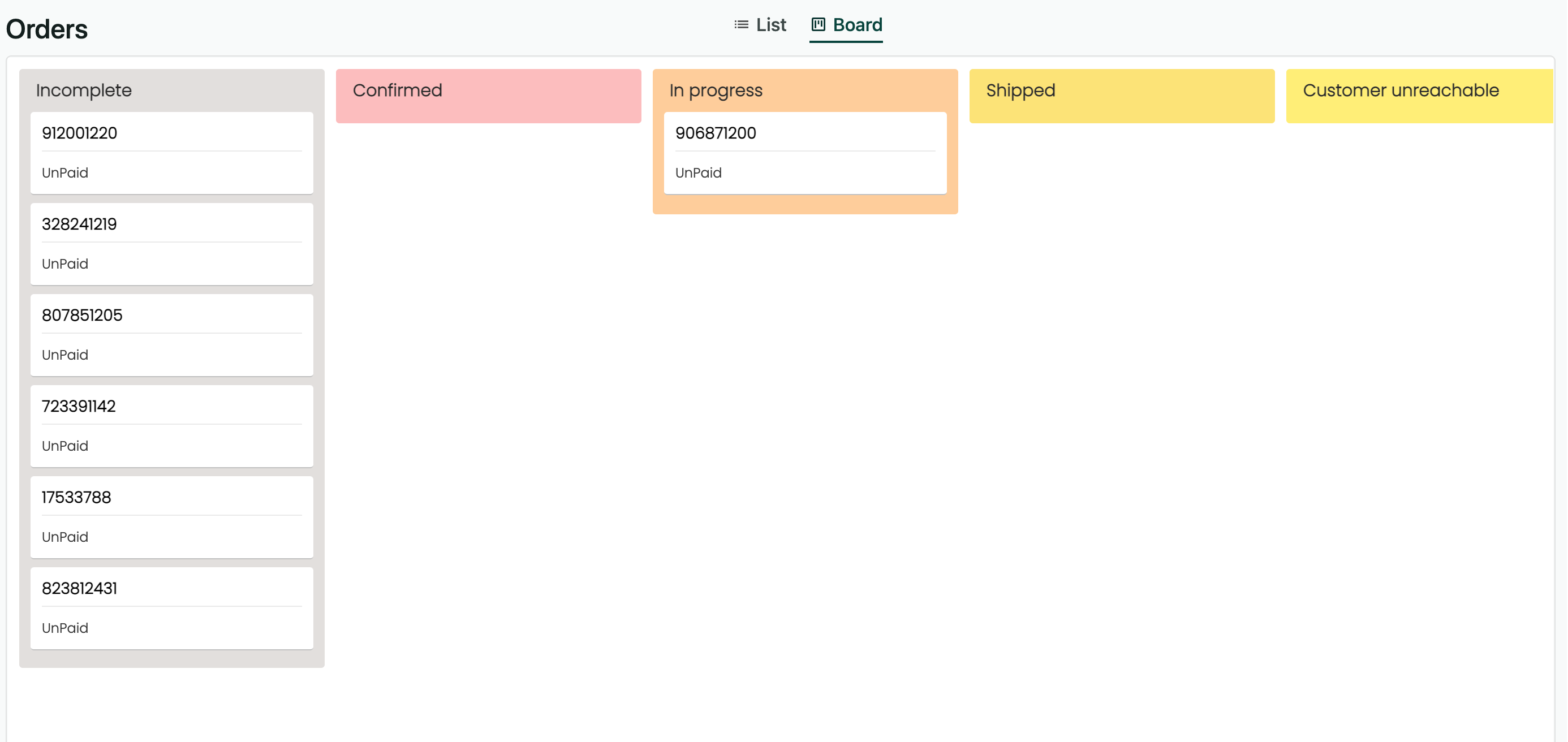 - The order list page also has a kanban board view for easy organization and tracking of orders.